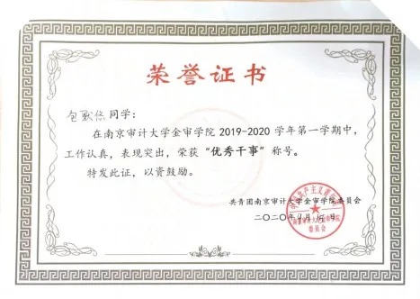 包默悠,女,江苏镇江人,中共党员,会计与审计学院19级审计5班学生。
