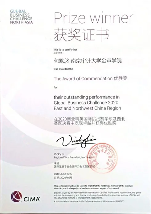2020年商业菁英国际挑战赛华东及西北赛区优胜奖