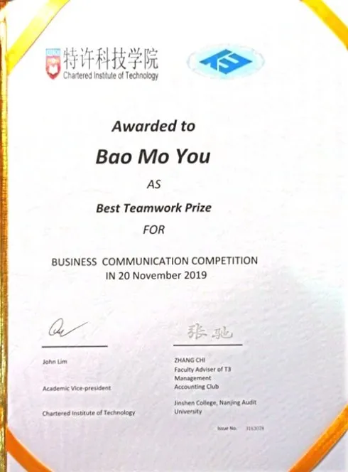 在校获奖情况:19-20学年校二等奖学金,20-21学年校三等奖学金;