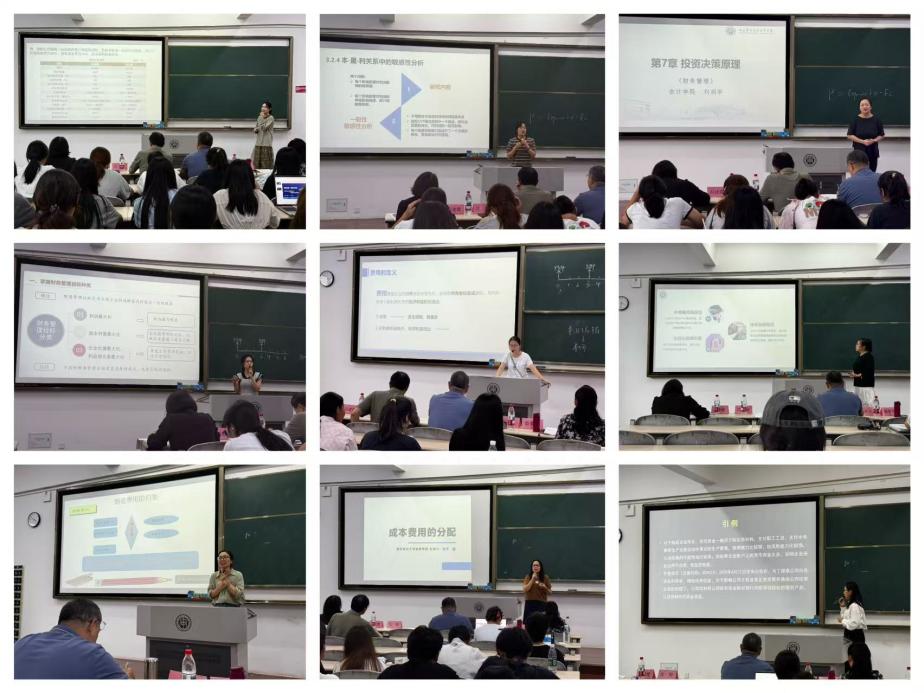 本次集中教学展示环节分为初中级职称组和高级职称组。初中级职称组中,马悦、王嗣琦、刘润宇、毛泽洪、张兰欣老师围绕固定资产决策、管理会计分析、财务共享模式下费用报销等内容授课;高级职称组刘蔓青、伍春晖、张宁、王璐老师则聚焦固定资产价值流转、成本费用归集与分配、货币资金等主题进行讲解,整体均展现出扎实教学功底与独特风格。