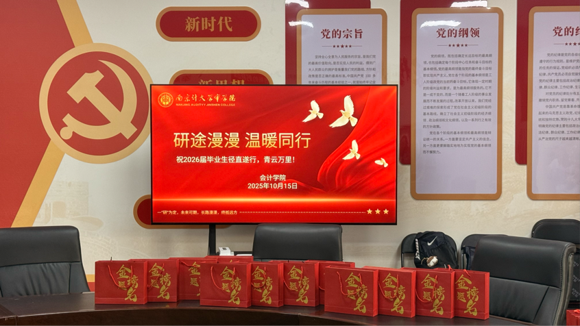 为鼓励2026届毕业生积极备战考研,传递学院的关怀与支持,会计学院于2025年10月15日在C西506会议室举办“研途漫漫,温暖同行”考研送温暖活动。学院院长吴中春、党总支书记于璐、副院长胡爱平和周莎、2026届辅导员及各班考研学生代表共同参与。活动由党总支书记于璐主持。