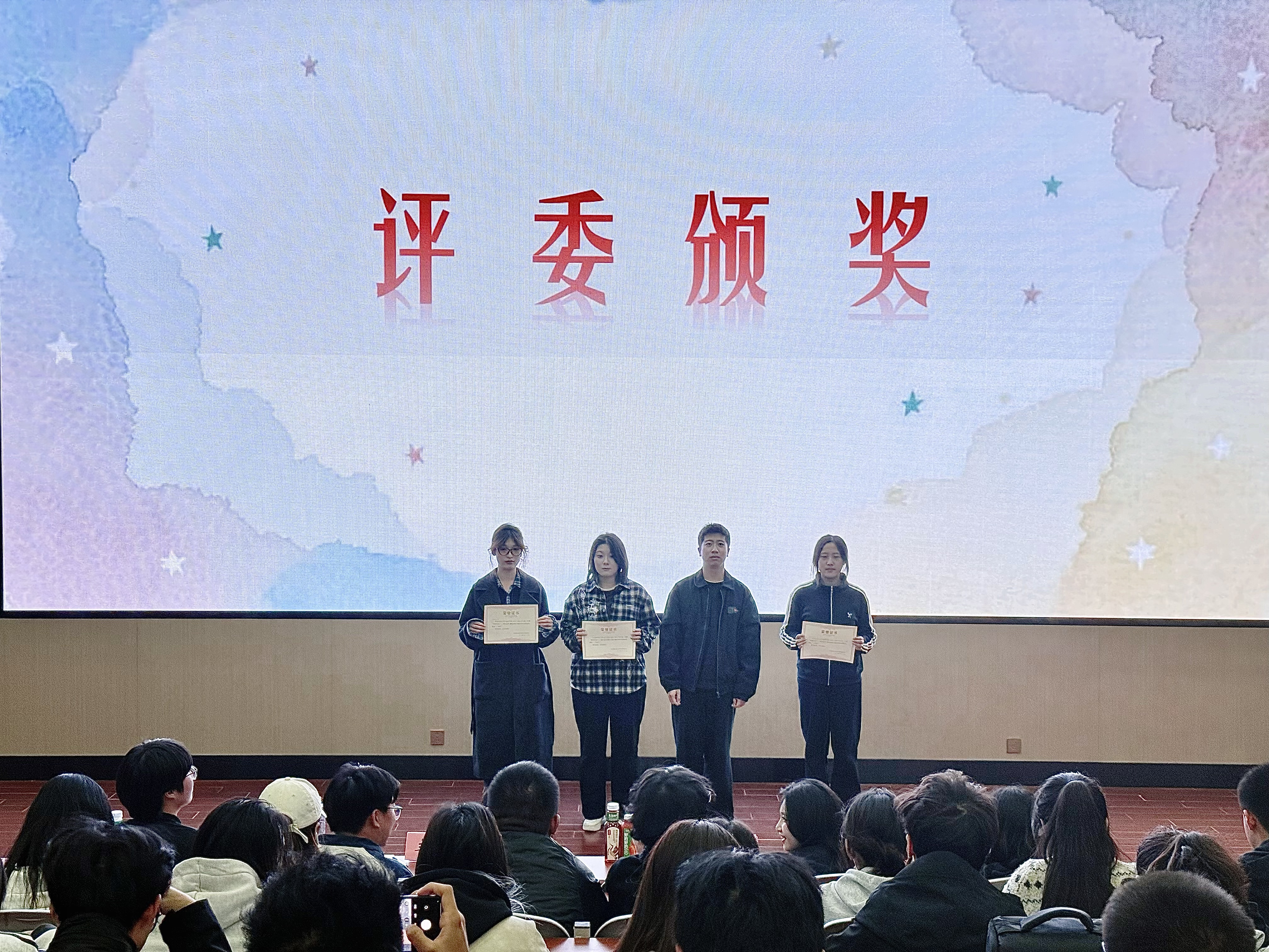 活动最后,薛老师和其他颁奖嘉宾在观众的热烈掌声中上台为获奖选手们颁奖并合影留念。