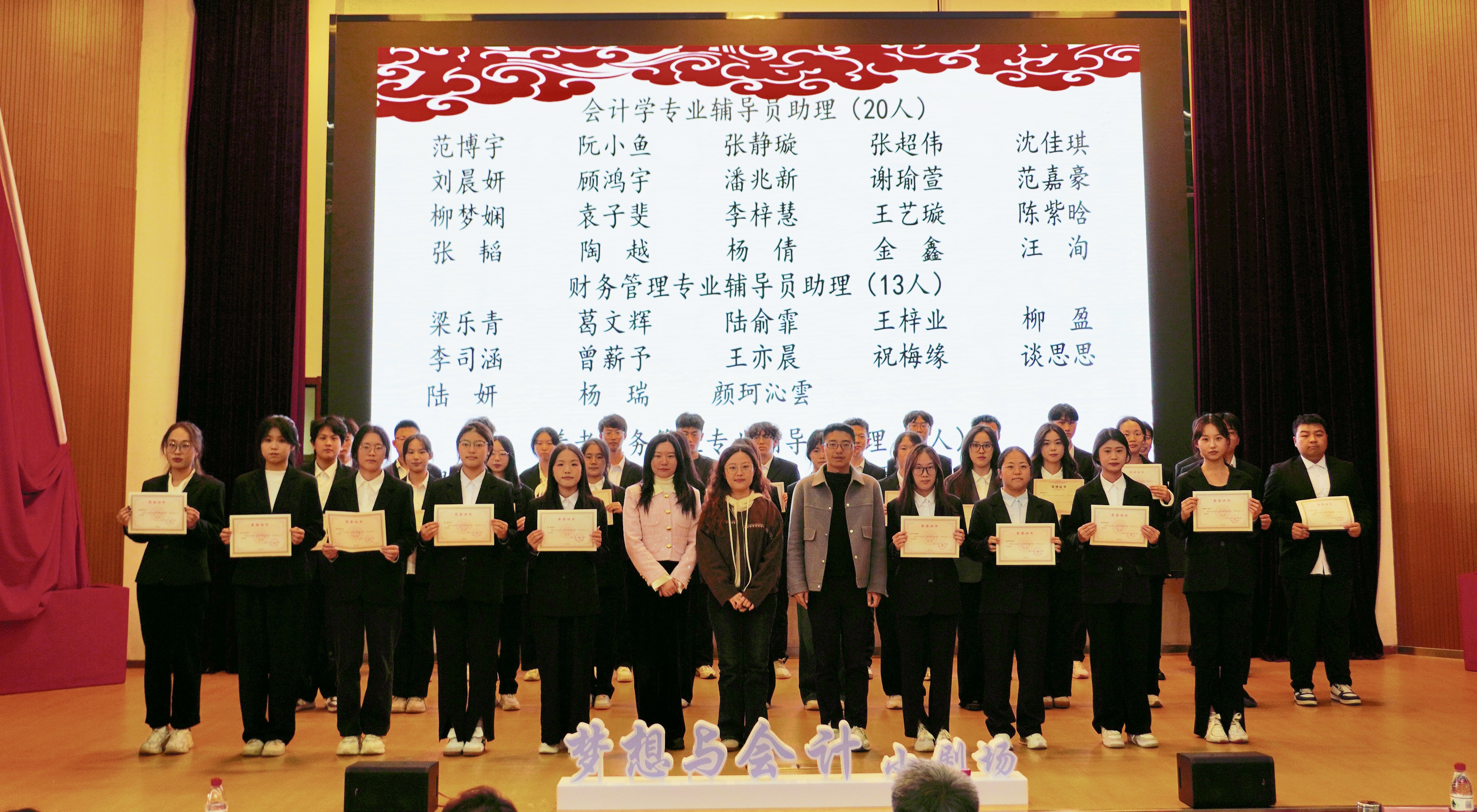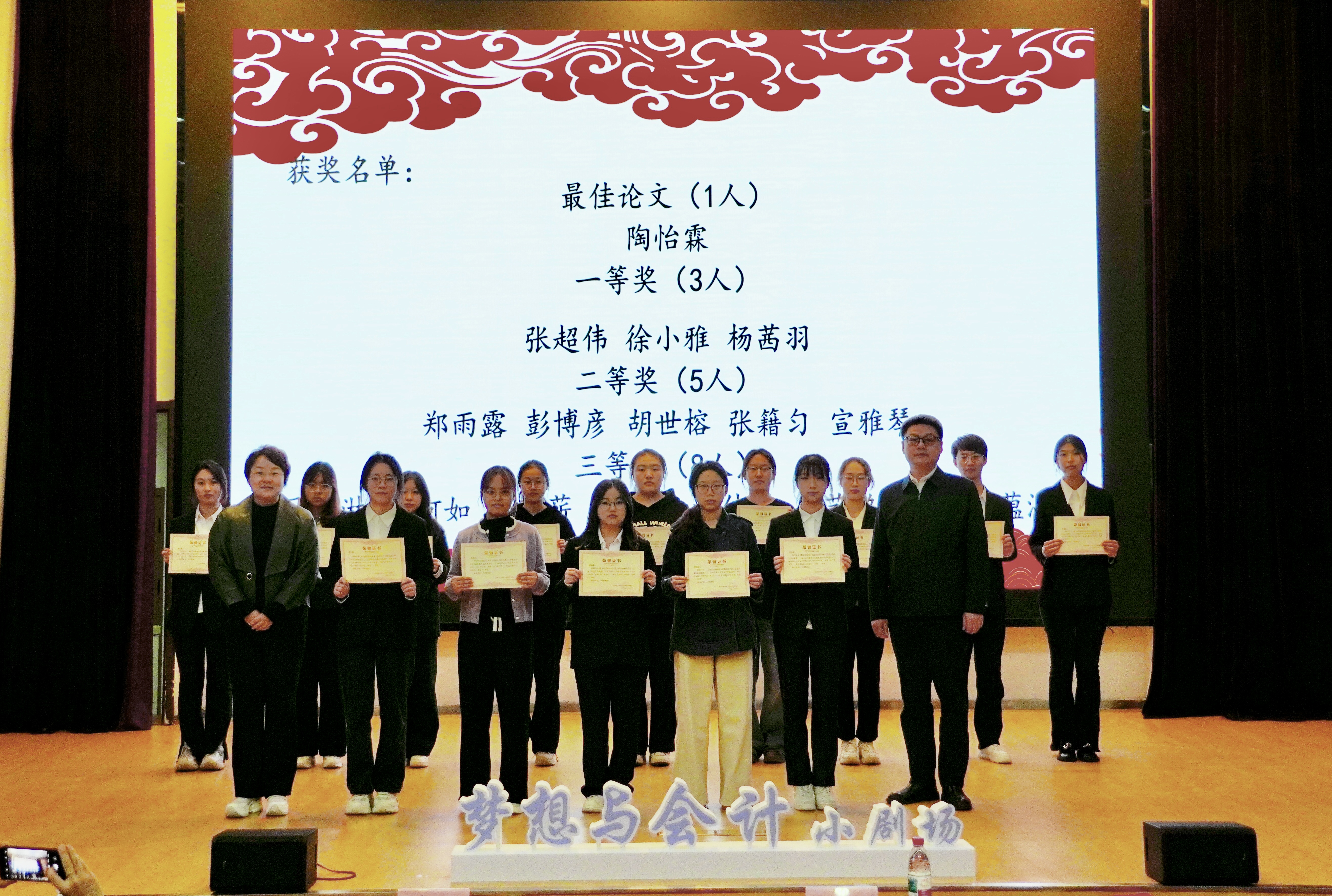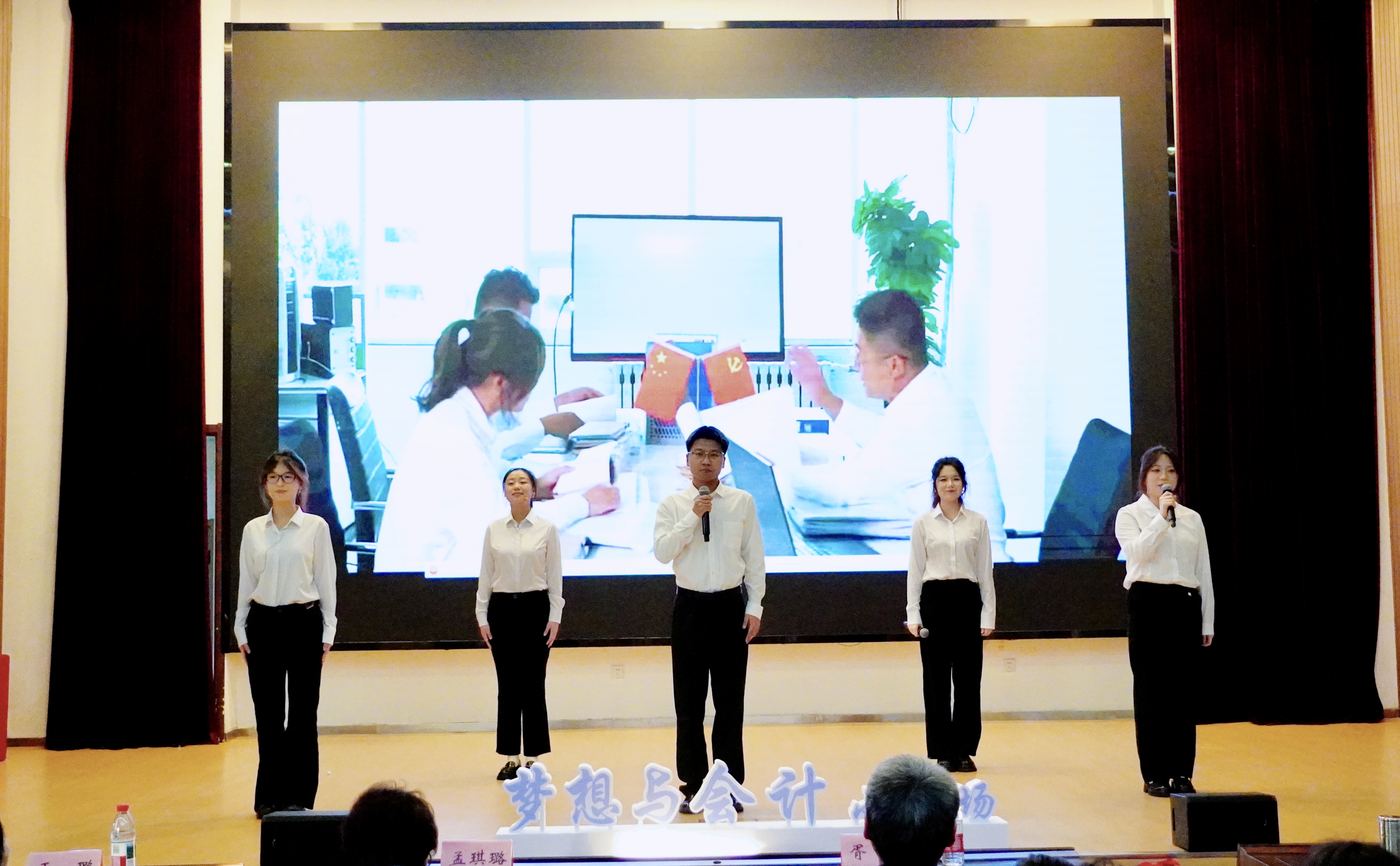立标杆以励行,厚职业以铸魂,会计学院“会”起新程,“计” 领未来——“梦想与会计”小剧场活动于11月11日下午在图书馆报告厅隆重举行。活动以“领航・薪火相传”“艺韵・财会情长”“笃行・准则为纲”三大篇章为脉络,将思想引领、专业内涵与艺术表达深度融合,为全体观众呈现了一场兼具思想性、专业性与观赏性的视听盛宴。南京审计大学金审学院副校长胥亮,党委委员、校长助理孟琪璐,会计学院院长吴中春,党总支书记于璐,校团委书记李莉,会计学院副院长周莎及部分师生代表出席活动。