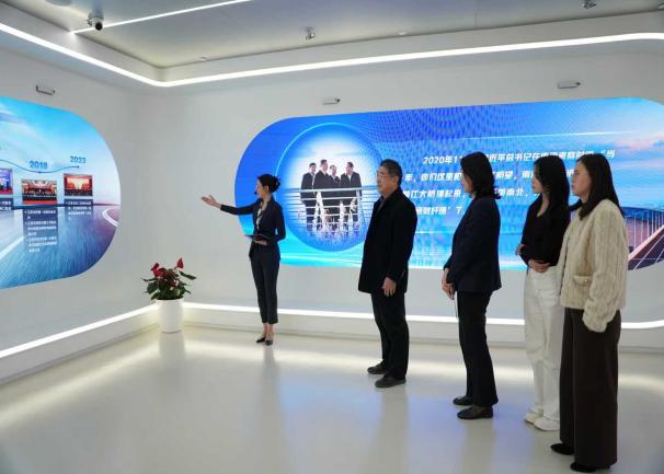 在江苏高能副总经理宋婷婷的热情接待下,调研团队首先参观了企业展示厅,系统了解了公司在能源、交通等领域的业务布局、发展历程及创新成果,对企业的运营模式与行业地位建立了整体认知。