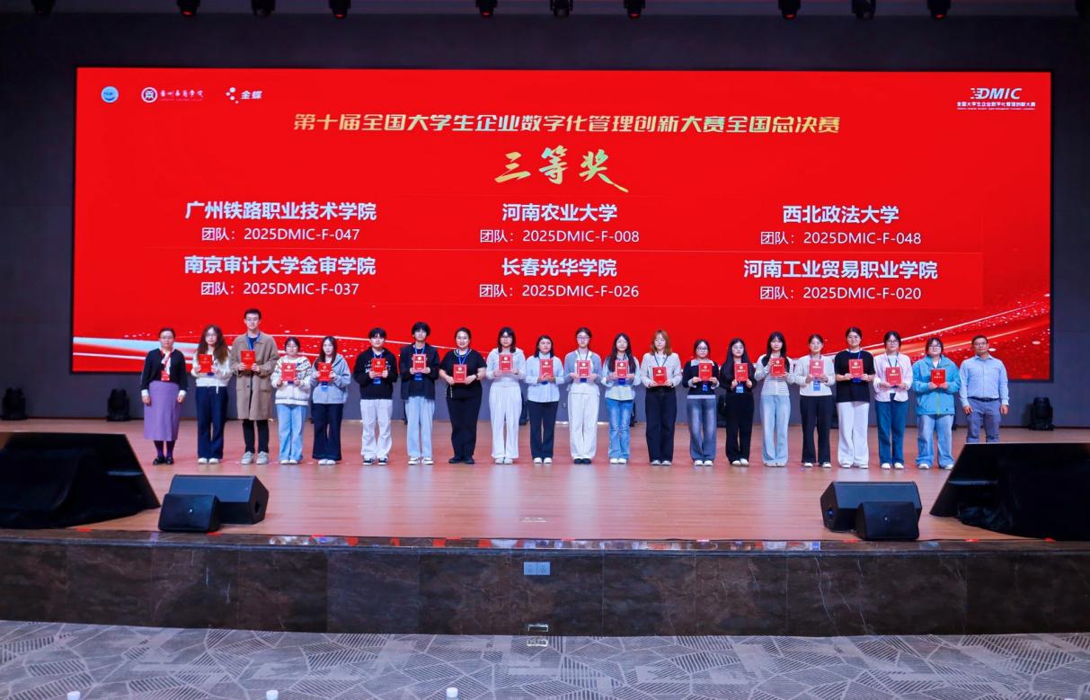 12月21日,第十届全国大学生企业数字化管理创新大赛全国总决赛在广州华商学院圆满落幕,来自西南财经大学、东南大学、中南大学等高校的112支参赛队伍同台竞技。我校会计学院柳盈、佘佳怡、沈佳琪三位同学,在胡爱平、陶思奇两位老师的悉心指导及徐一帆老师的全程护航下,凭借扎实的数字化管理知识、默契的团队协作能力及卓越的实践创新水平,成功斩获全国三等奖,充分展现了我校在数字化人才培养领域的显著成效与学子们过硬的综合素养。