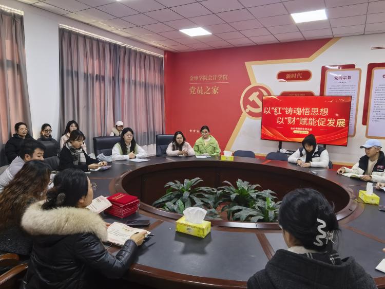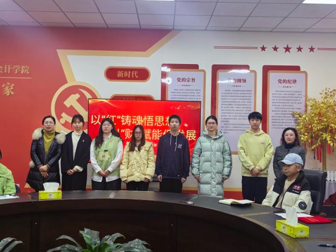 为深入学习贯彻习近平新时代中国特色社会主义思想,巩固拓展主题教育成果,总结年度党建工作成效,凝聚支部发展合力。12月29日中午,会计学院学生党支部于C西506召开“以‘红’铸魂悟思想,以‘财’赋能促发展”年末总结会。本次会议由会计学院学生党支部书记孙含笑主持,会计学院党总支书记于璐、会计学院学生党员代表与大三全体发展对象参加本次会议。