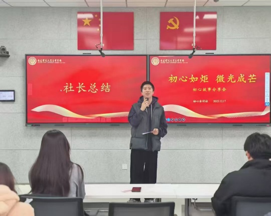 作为初心会计社社长,他从社团初创时的摸索前行,到逐步实现管理规范、运行有序,始终以责任为笔、以热爱为墨,书写社团建设新篇章。他紧扣“深耕专业实践”等五大宗旨,聚焦“思想淬炼”等三大目标,立足会计专业特色,统筹规划社团发展。单学期内精心打造初心故事分享会、“一站到底”会计知识大比拼、“研途漫漫,温暖同行”考研送温暖等9项品牌活动,内容丰富、形式新颖,全面覆盖思想引领、专业实践、考研服务、志愿服务、企业交流等多个维度,切实搭建起思学并重、知行合一的成长平台,在服务同学成长、繁荣校园文化中展现了青年担当。