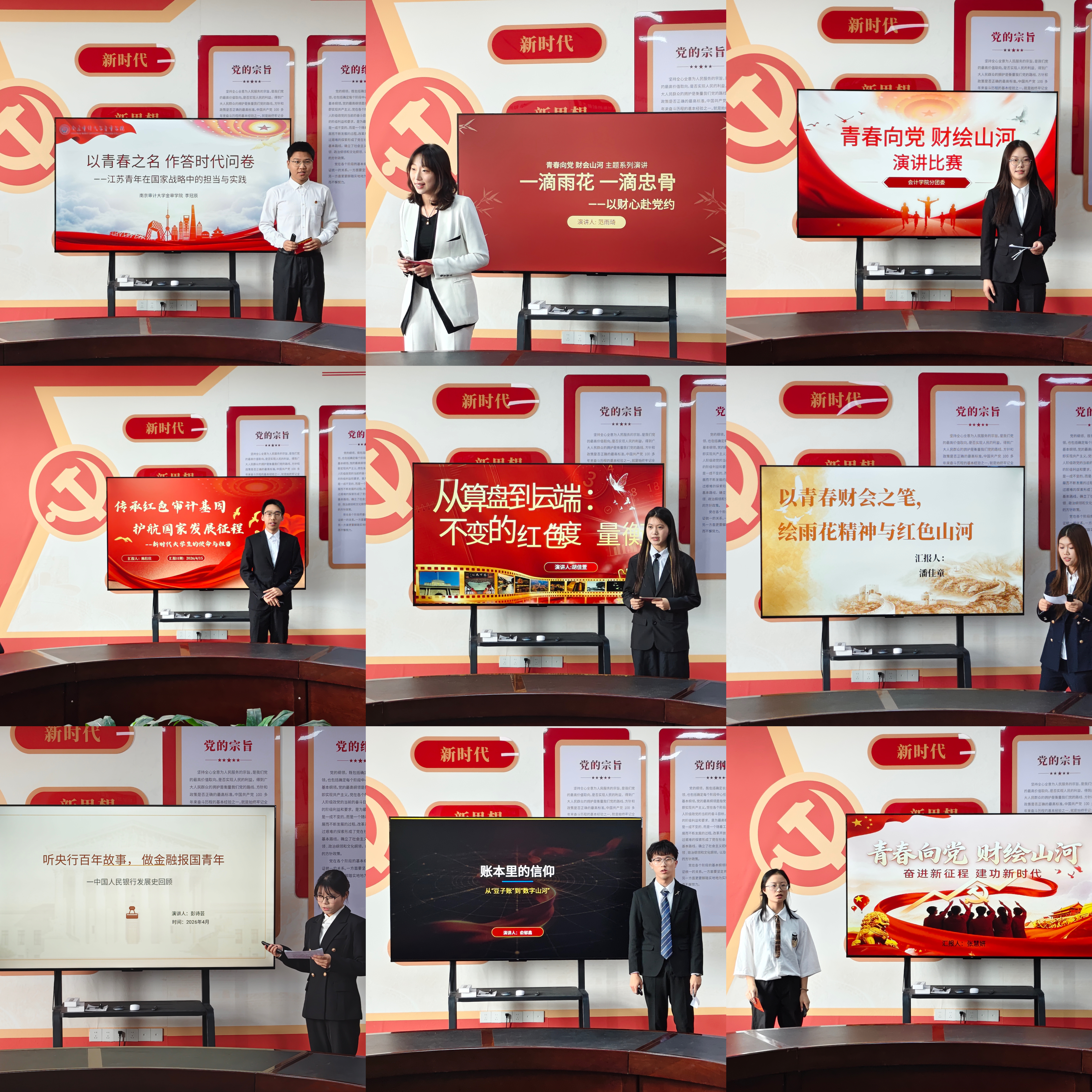 比赛中,选手们立足专业、紧扣时代,从不同维度诠释财会人的使命担当。李冠辰以青春实践彰显时代担当;范雨琦深挖“雨花精神”,勾勒红色财经的忠诚底色;牛晨曦回溯红色财经与共和国同行的壮阔历程。陈壮壮从审计视角传承红色审计基因;胡佳萱以器物变迁为引,道出从算盘到云端的财会精神恒守;潘佳童提炼雨花精神中的财会人内核,展现红色金融与国家发展的同心同向。彭诗芸循央行百年史,诠释金融报国初心;俞郁鑫以“豆子账”为线索,讲述跨越时空的精神接力;张慧妍打破刻板印象,碰撞出红色信仰、专业初心与青春力量的璀璨火花。